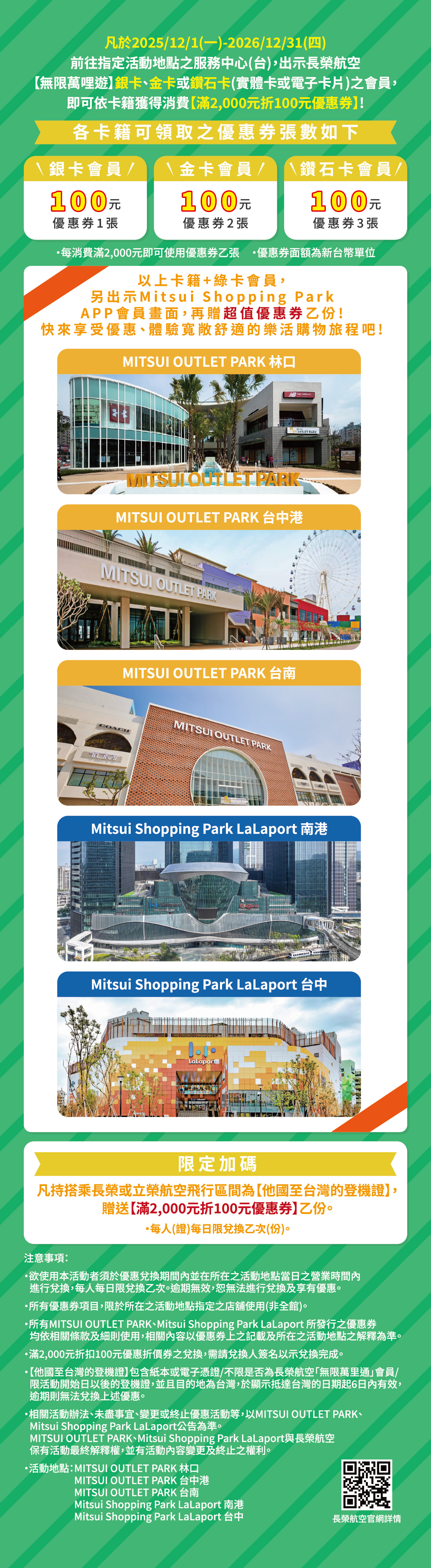 LaLaport 台中 x 長榮航空|無限萬哩遊