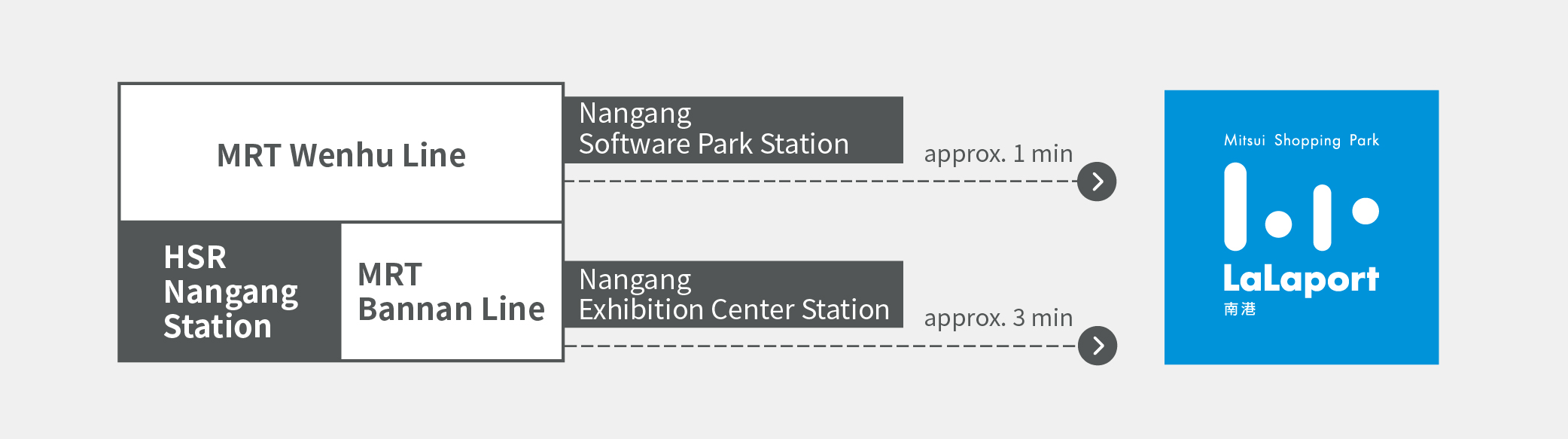 About 6 minutes from Mitsui Shopping Park LaLaport Nangang.