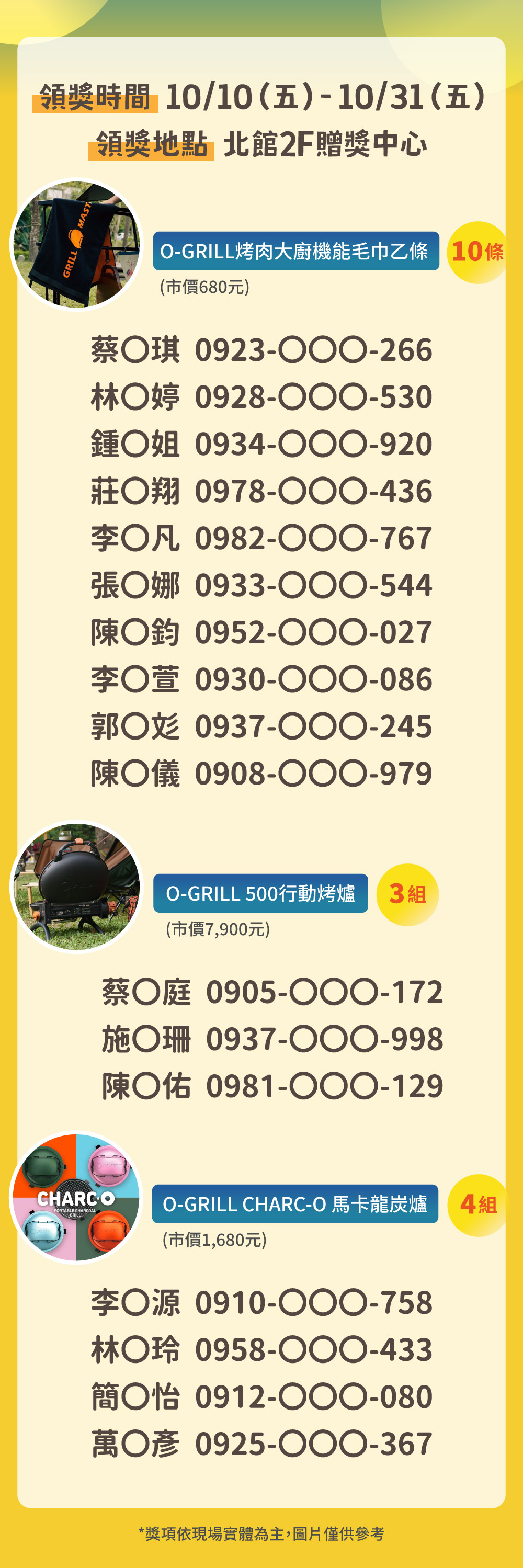 秋聚烤肉趣│中秋節加碼抽獎中獎公告