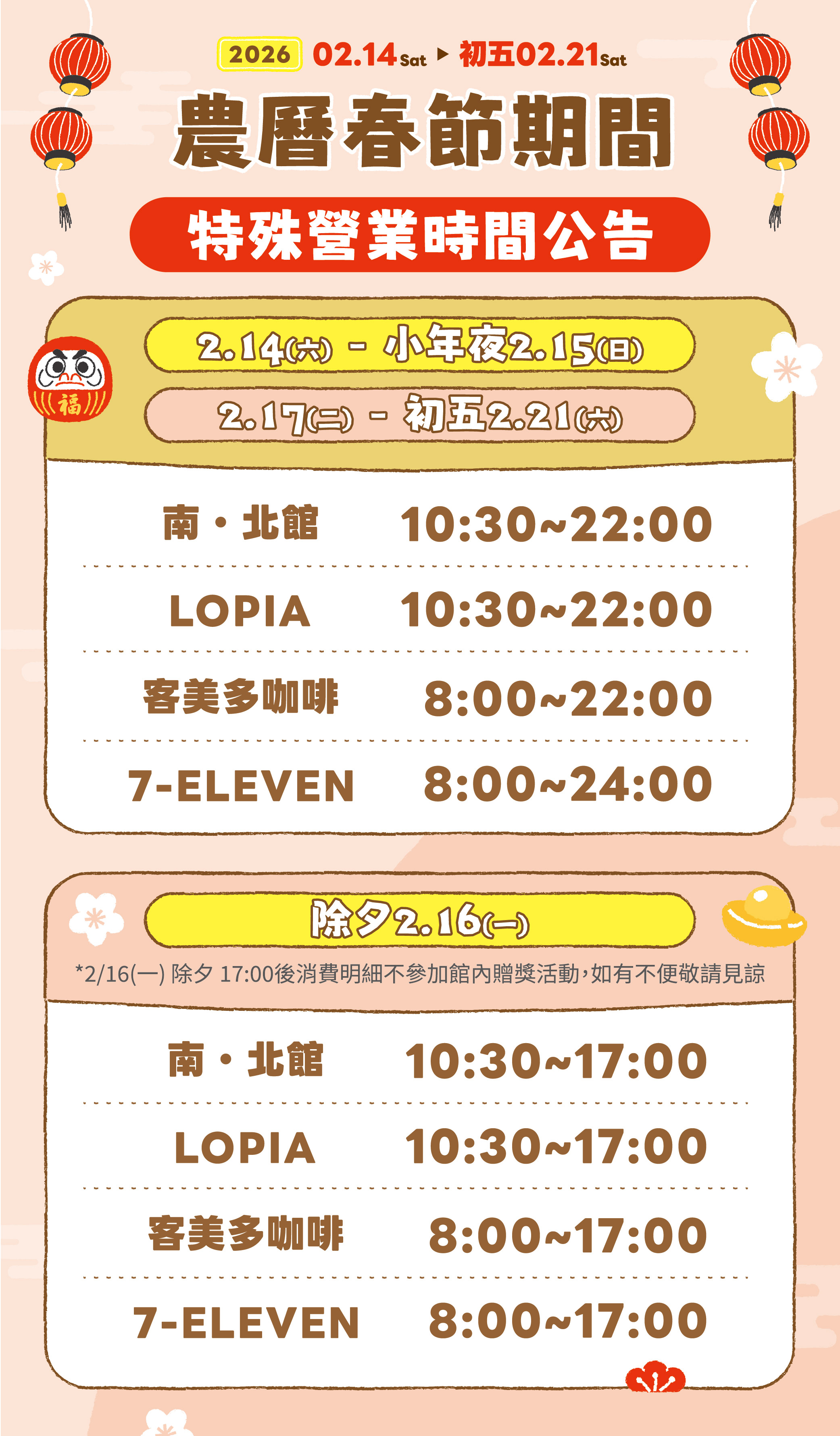 2026 農曆春節期間|特殊營業時間公告 x 除夕夜間館內動線說明
