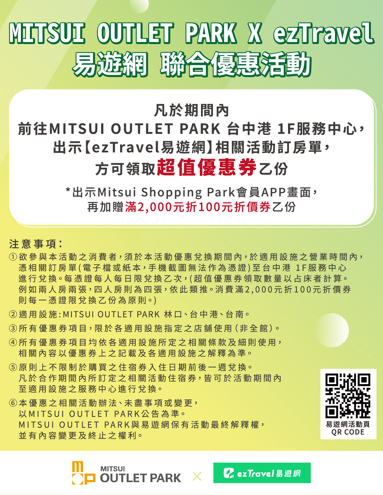 MITSUI OUTLET PARK 台中港 × 易遊網 購物優惠