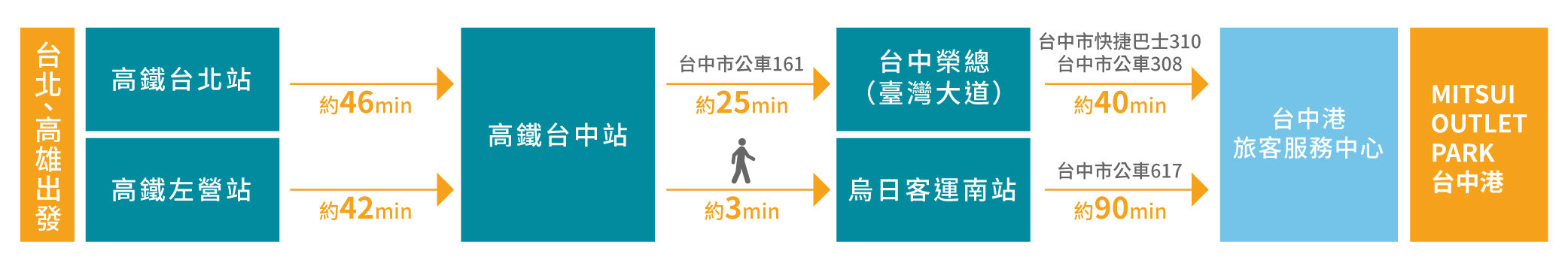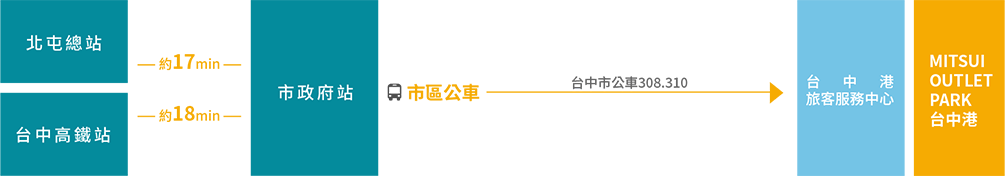 - ※「台中港旅客服務中心站」下車後,請沿指標約徒步3分鐘,即可抵達設施。