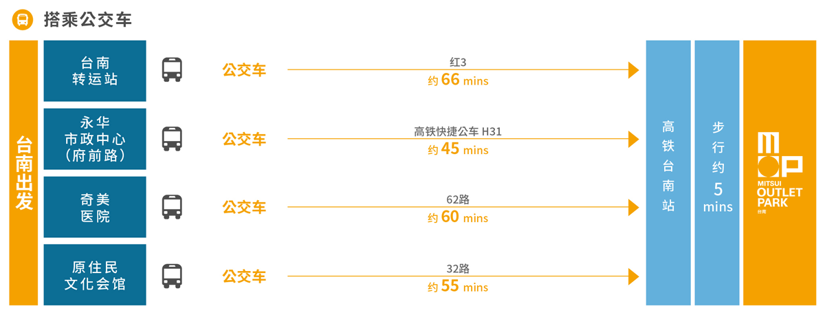 - 依各路公交车下车站牌不同,及徒步时间不同,请参阅图标各站牌位置。