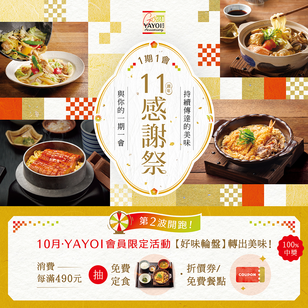 2025-09-26 彌生軒 感謝祭第二波開跑!100%中獎! 彌生軒 感謝祭第二波開跑!100%中獎! 活動時間:10/1(三)~10/31(五) 好味輪盤 轉出美味 會員消費每滿 490元 享轉轉樂一次,滿980元可轉兩次,依此類推無上限.ᐟ 吃越多,抽越多 快來 YAYOI彌生軒 一起共享 11歲生日饗宴 美食&食品 2F