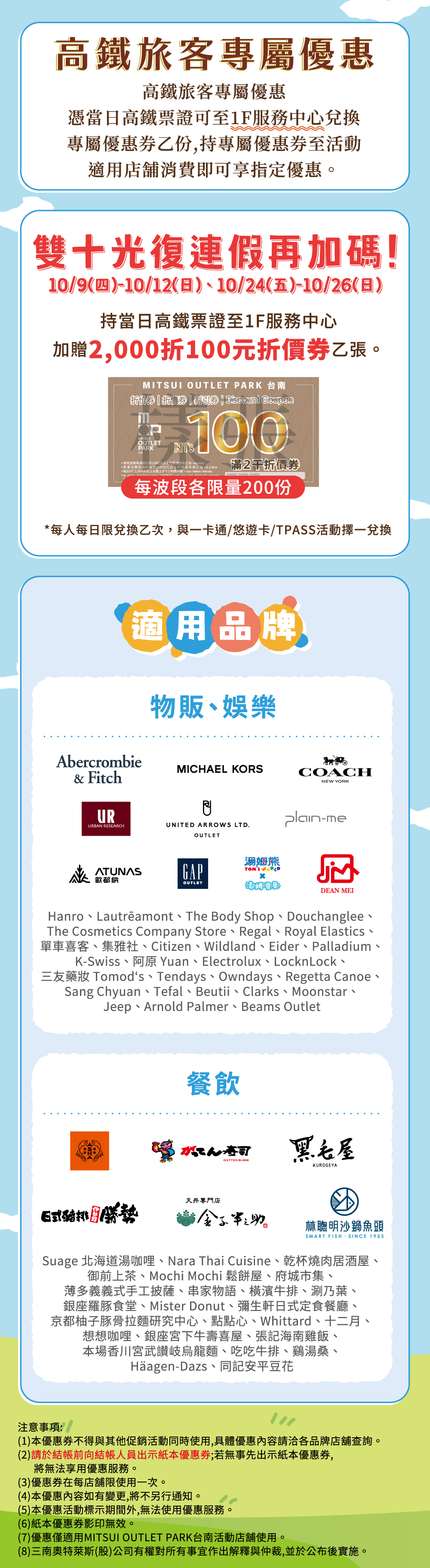 ※10/9-10/12加碼贈滿2000抵100折價券,已全數兌畢※