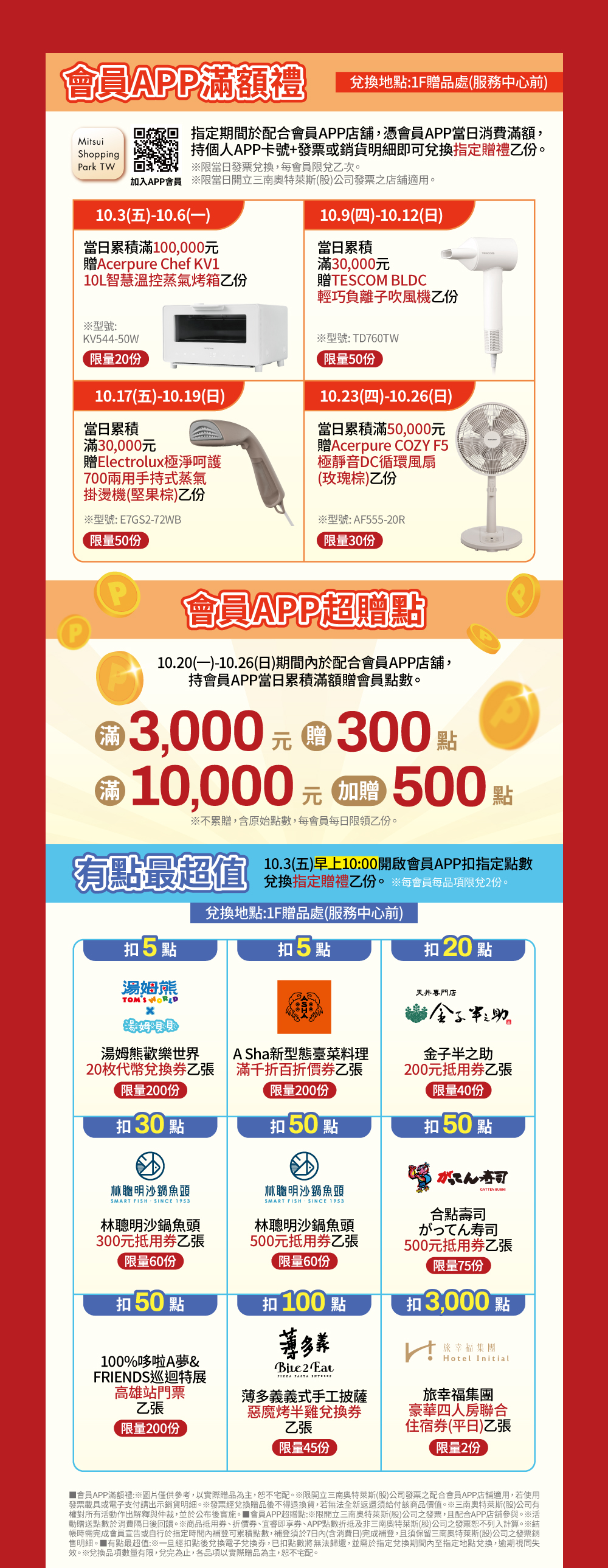 Mitsui Shopping Park 會員,購物點數累積、折抵、專屬回饋,立即下載,優惠享更多!