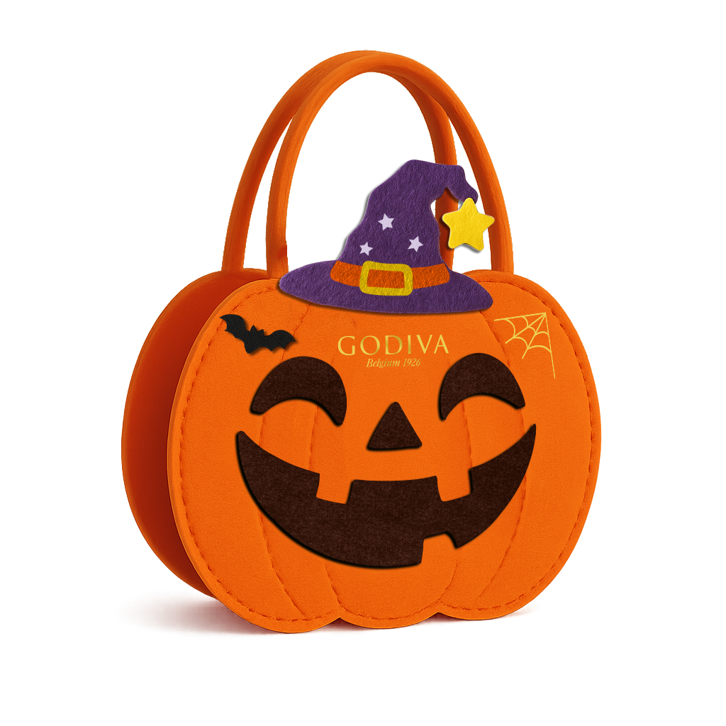 購買任三罐巧克力豆($580)一盒童趣禮盒($450)即贈Godiva限量萬聖節糖果袋一個。