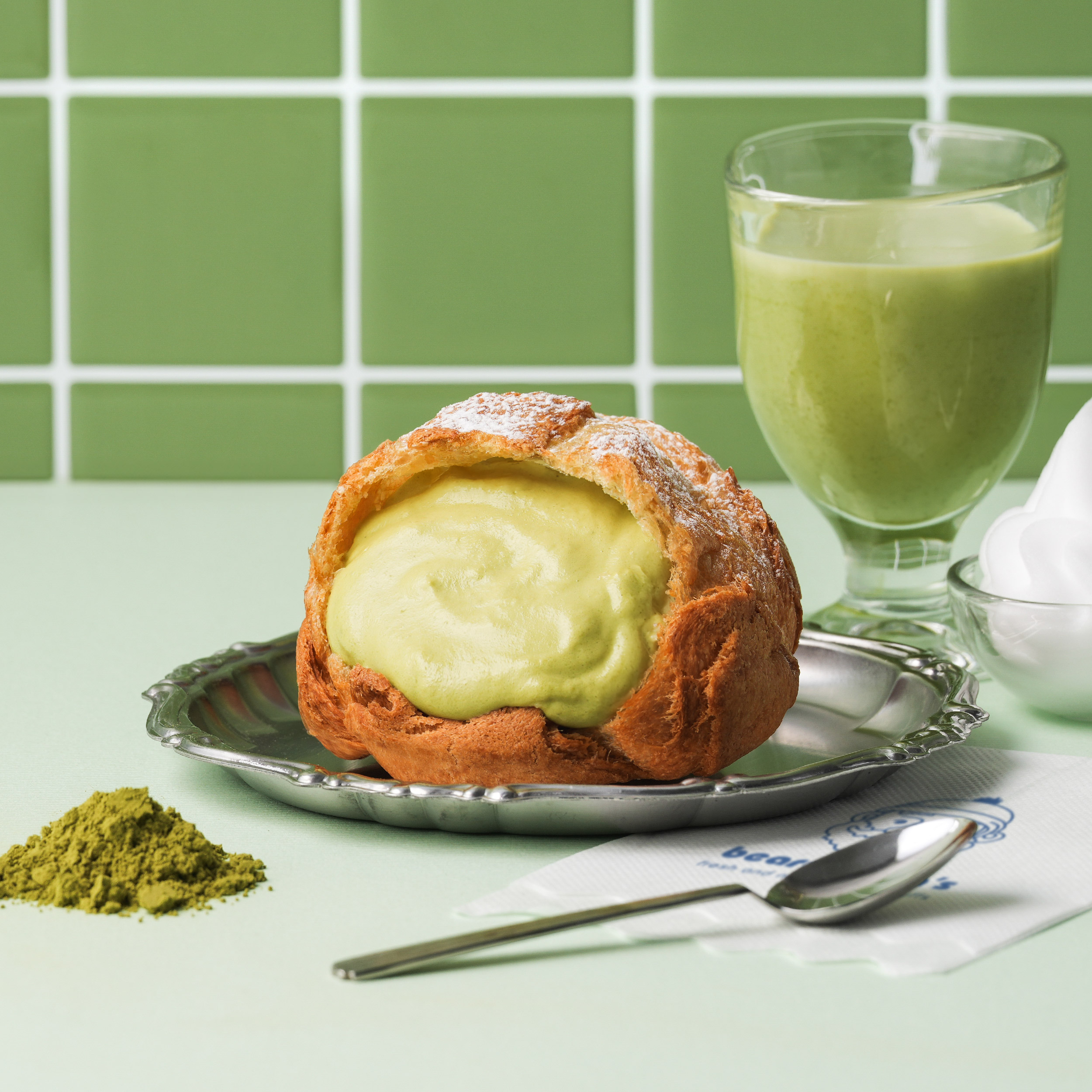 濃郁抹茶粉搭配綿密微甜的鮮奶油,一口咬下,茶香與奶香層層堆疊,細膩的層次、完美的襯托,剛剛好的味覺平衡。