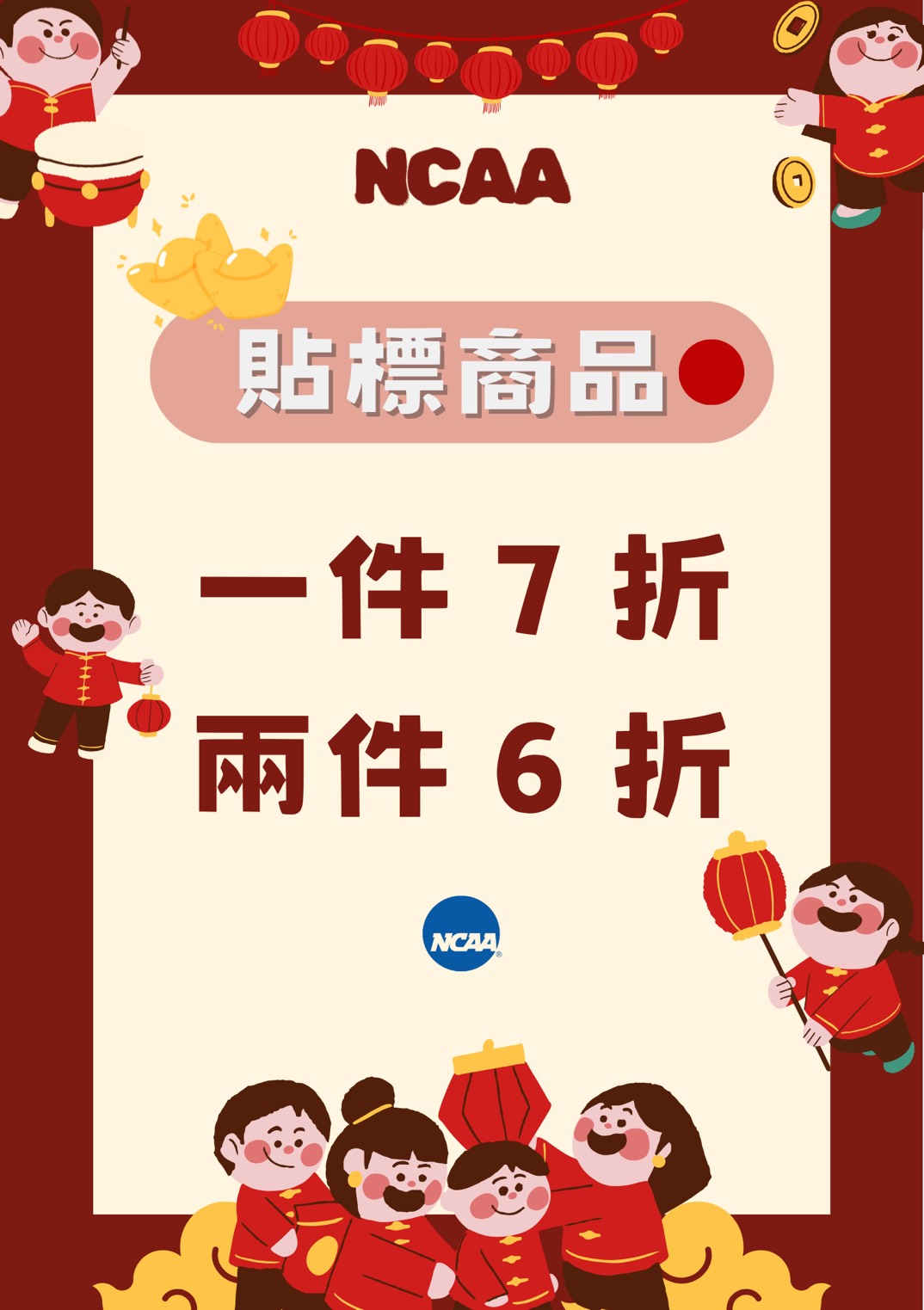 2026-02-12 NCAA 春節限定優惠 NCAA 春節限定優惠 ■ 活動日期:即日起-2/28(六) 中性服飾590元、790 元,洞洞鞋690元起 夏季服飾5折起,秋冬新品1件7折、2件6折 男/女裝 2F