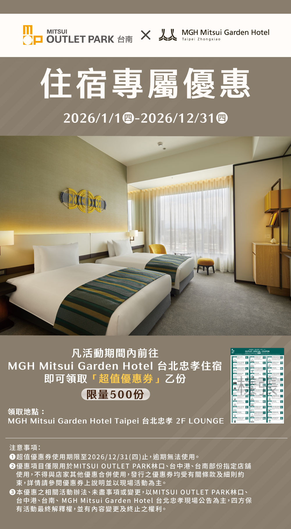MGH Mitsui Garden Hotel 住宿專屬優惠