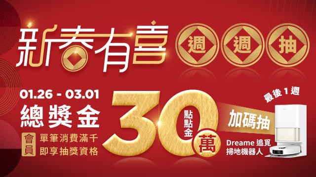 週週抽35個大紅包:8,888元點點金大紅包5個、588元點點金招財紅包30個