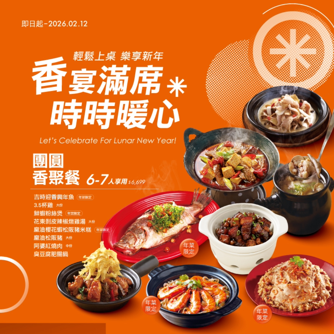 預購時間:11/25~2026.02/12 新春年菜外帶預購中!
