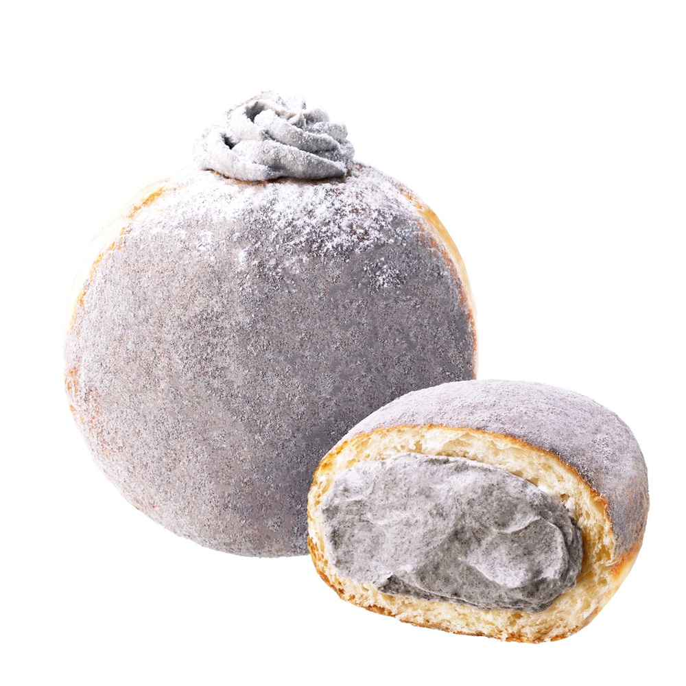 結合Mister Donut新圈體波波隆尼,將醇厚芝麻拌入鮮奶油,填入柔軟的波波隆尼中,並於外表撒上芝麻糖粉,外表圓渾、內餡飽滿,彷彿就是芝麻湯圓!