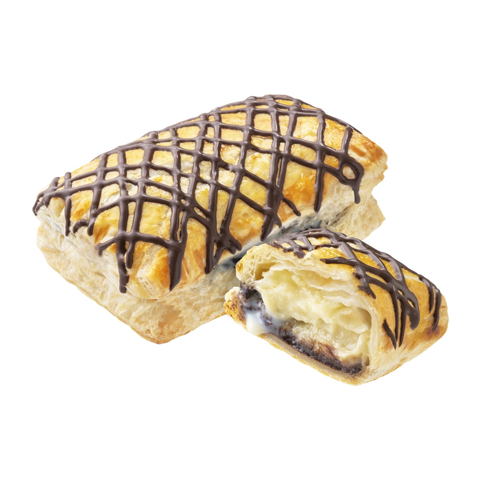 將北海道酥鬆派皮融入泰式香蕉煎餅元素,於派皮中加入香蕉餡料、可可醬及煉乳,最後以可可線條營造香蕉煎餅淋醬感~
